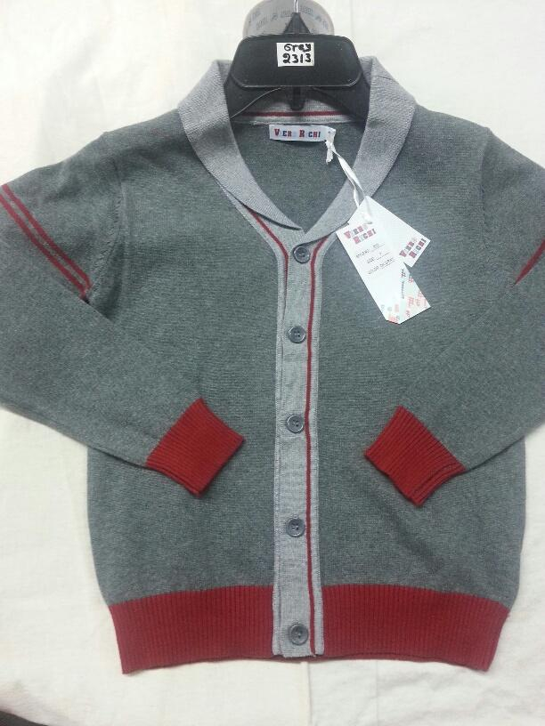 BOY'S SWEATER (CARDIGAN) 100% COTTON SIZE 2-7 & 8-16 GRAY WITH RUST STYLE # 2313