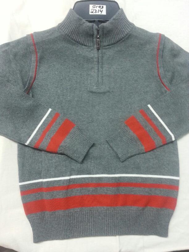 BOY'S SWEATER 100% COTTON MACHINE WASHABLE SIZE 2-7 & 8-16 GRAY WITH RUST STYLE # 2314