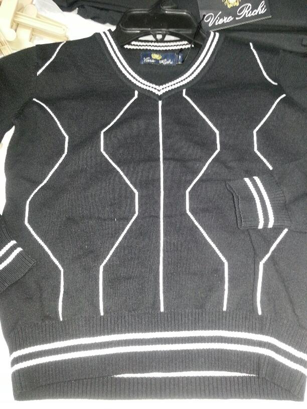 MEN'S & BOY'S V NECK PULLOVER SWEATER, BLACK ONLY, 100% COTTON, MEN'S SIZES M-L & BOY'S 8-18, STYLE # 2216BL