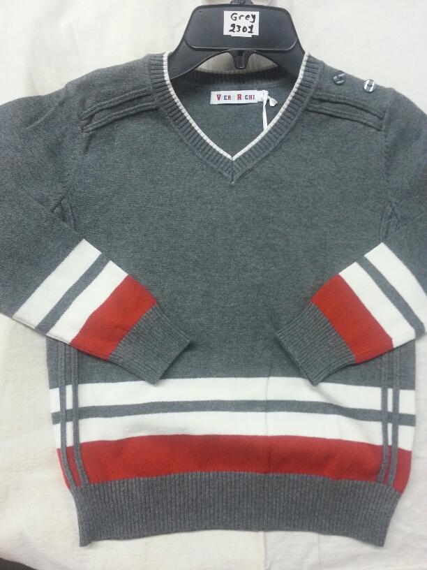 BOY'S SWEATER V NECK 100% COTTON SIZE 2-7 & 8-16 AVAILABLE IN 2 COLORS GRAY & NAVY STYLE # 2273