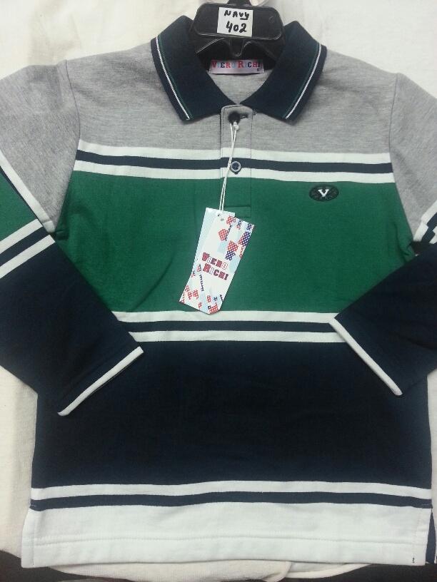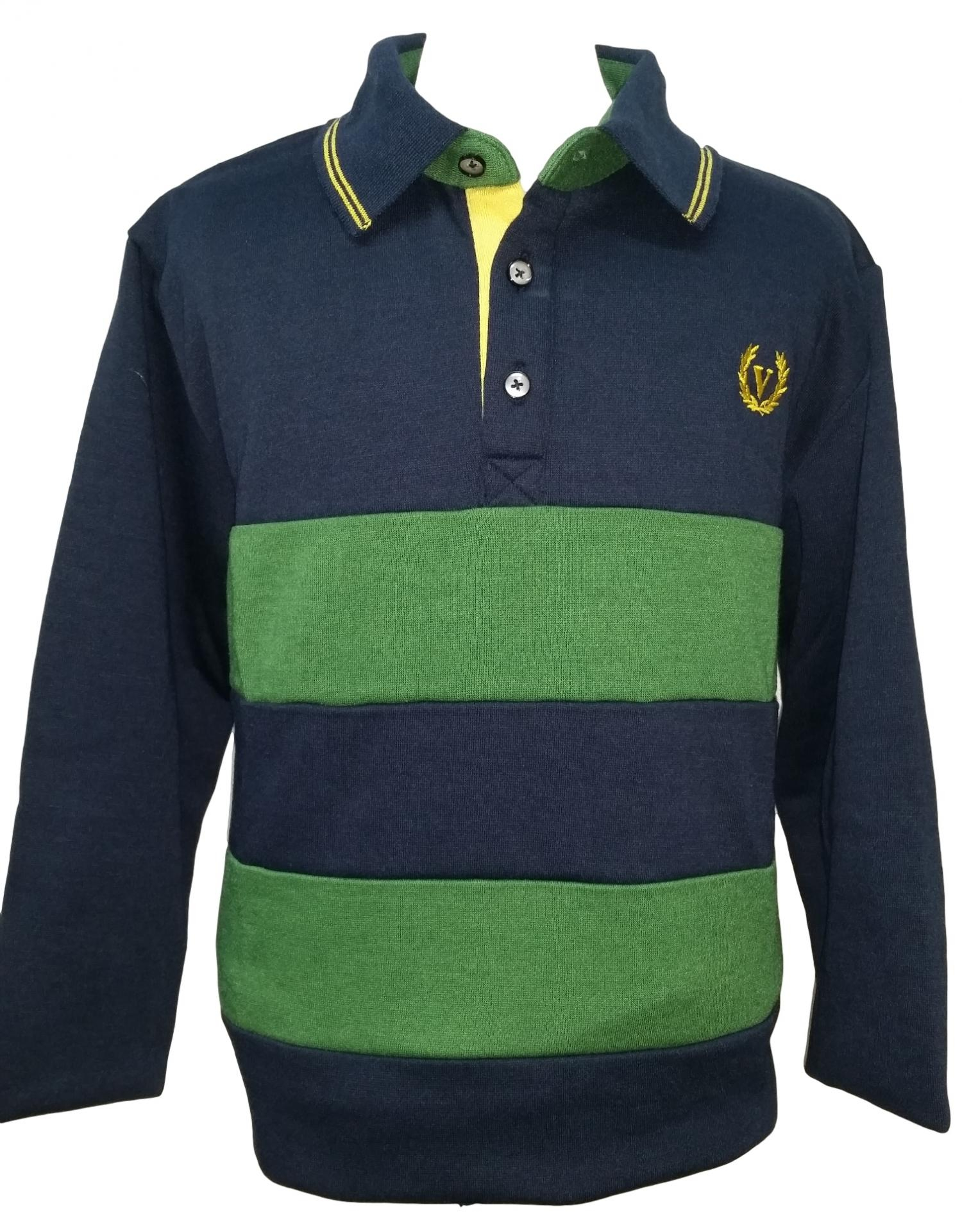 BOY'S POLO SHIRT, NAVY ON GREEN, STYLE # 407, LONG & SHORT SLEEVE, 60% COTTON 40% POLY, SIZE 2-7 & 8-16
