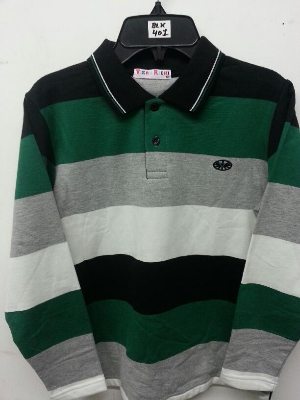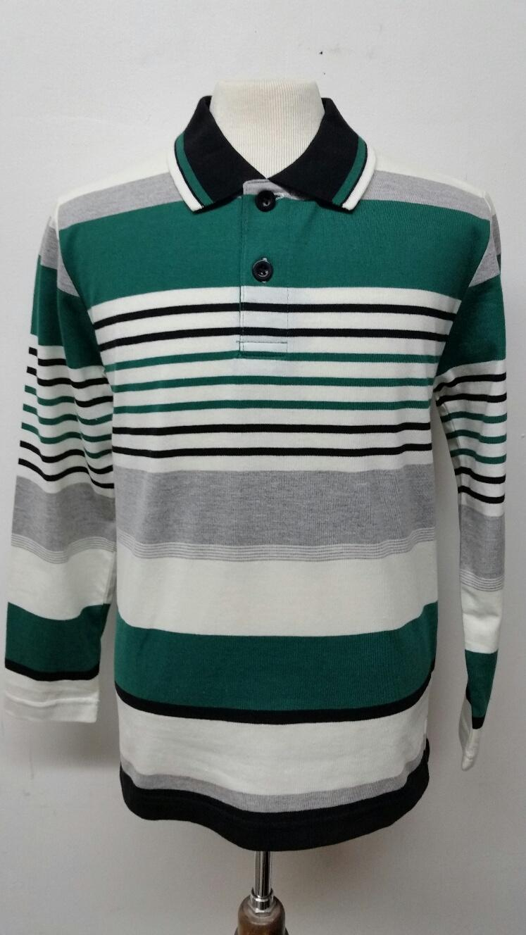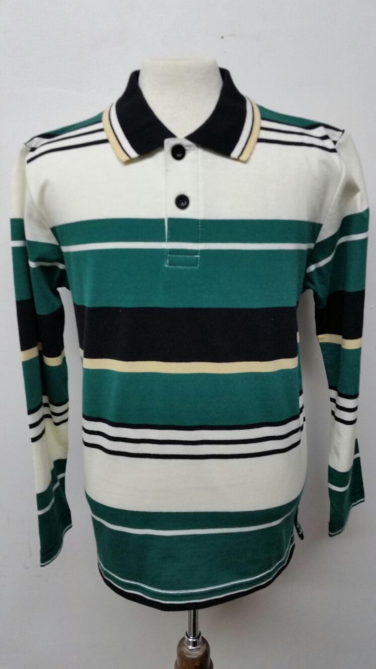 BOY'S POLO SHIRT, BLACK ON GREEN, STYLE # 410, LONG & SHORT SLEEVE, 60% COTTON 40% POLY, SIZE 2-7 & 8-16