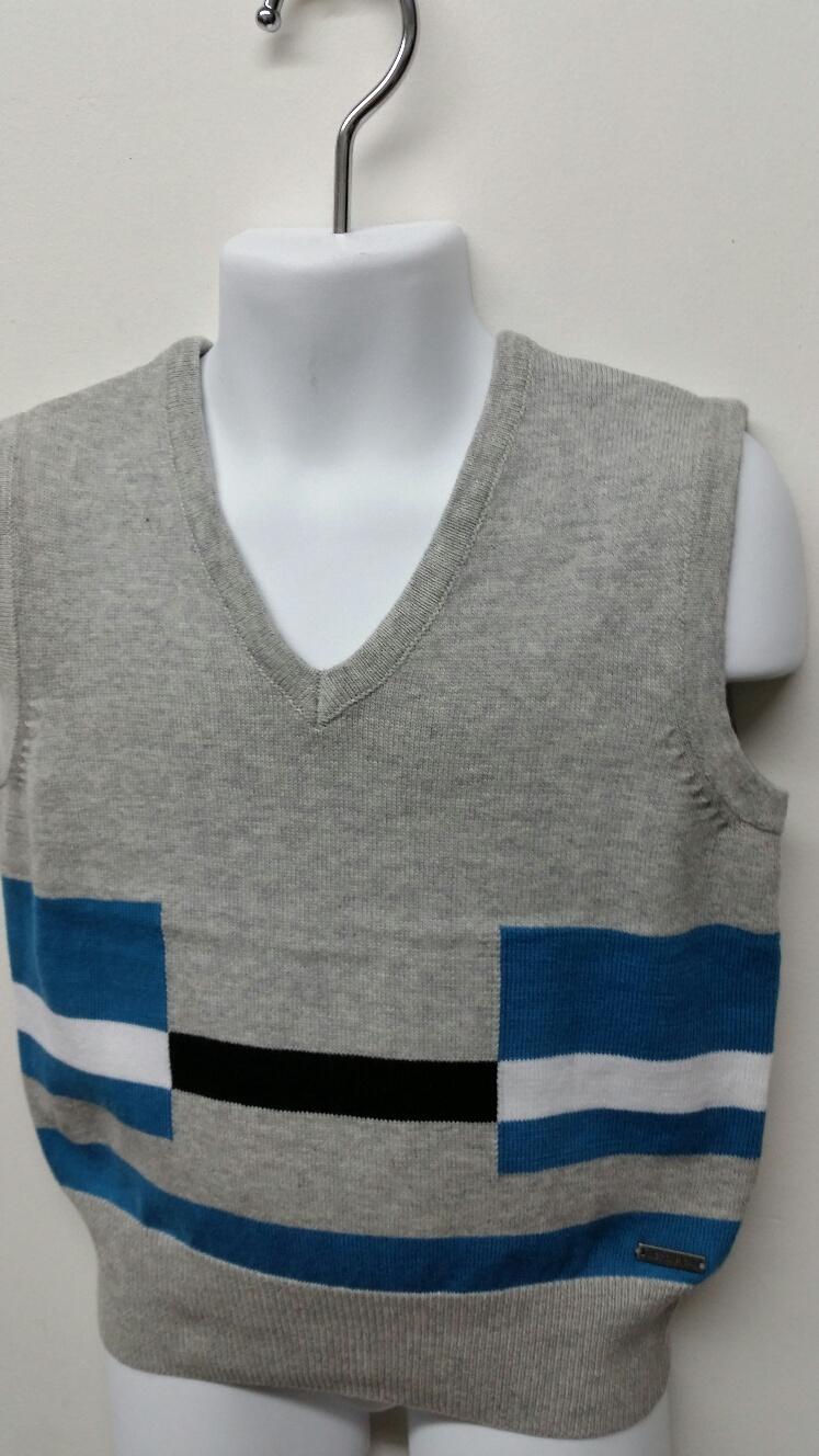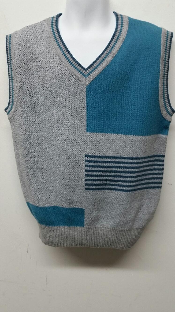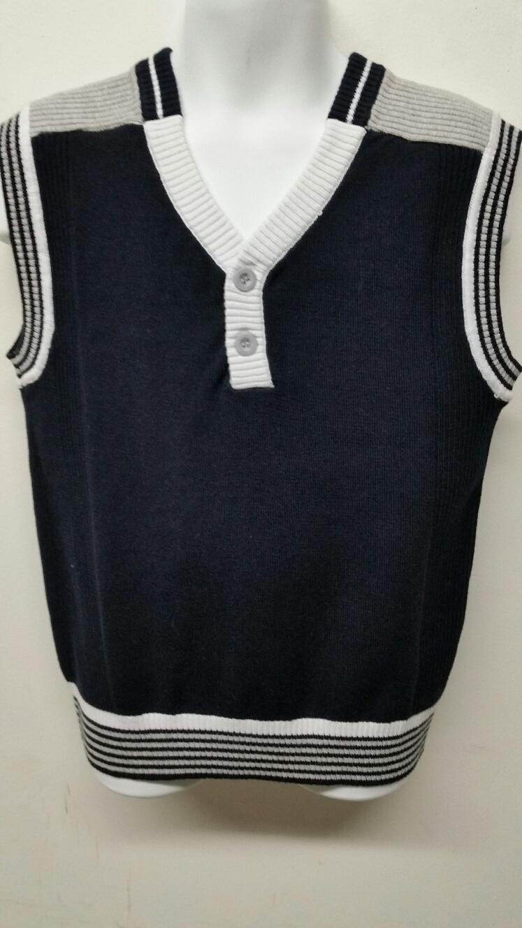 BOY'S SWEATER VEST 100% COTTON SIZES 2-7 & 8-16 & 16-20 STYLE # 2385-BL THE BACK OF THIS VEST IS SOLID GREY