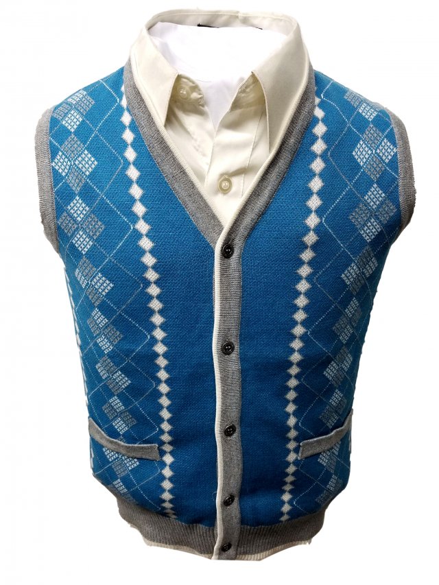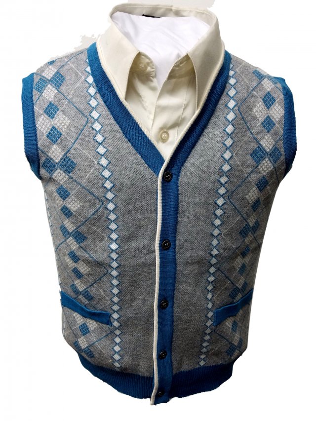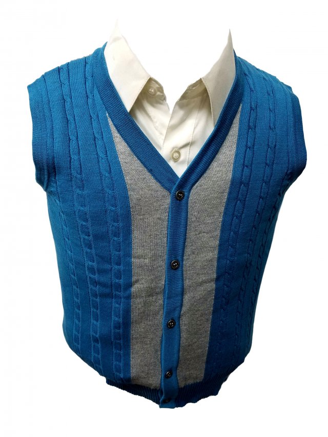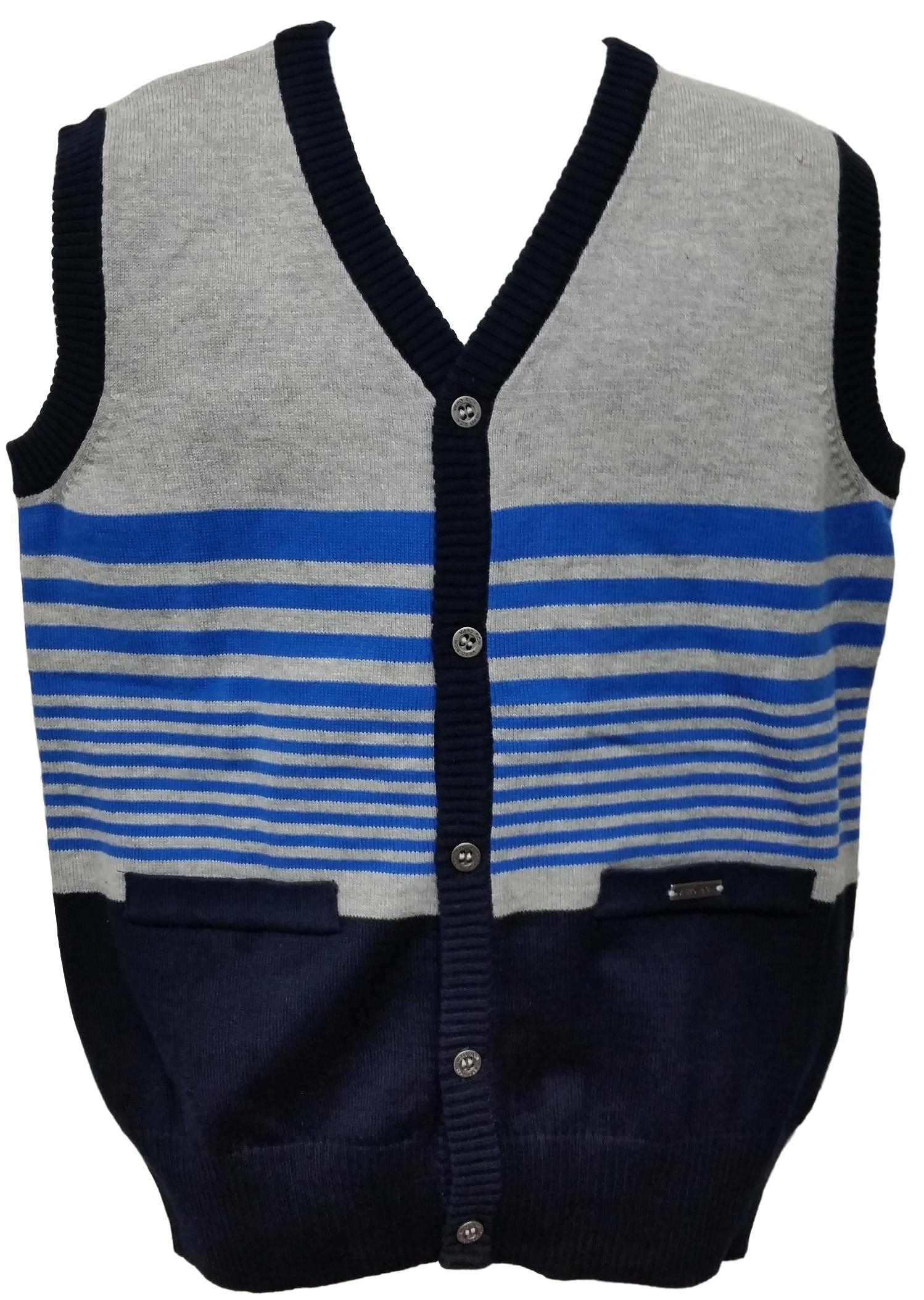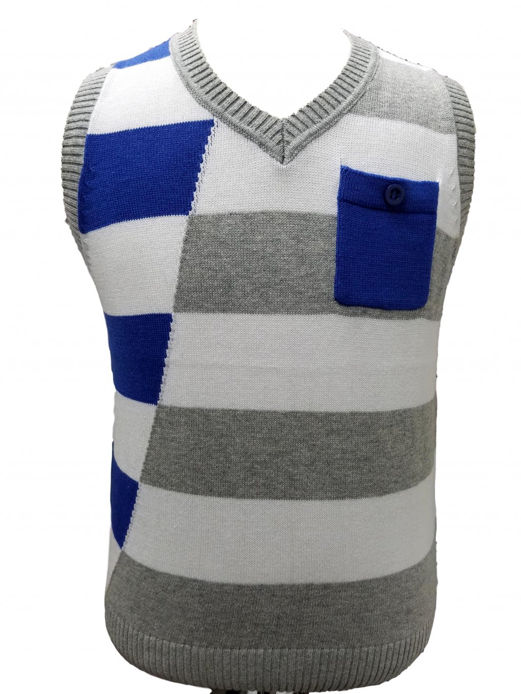 BOY'S SWEATER VEST 100% COTTON SIZES 2-7 & 8-16 & 16-20 STYLE # 2385-BL THE BACK OF THIS VEST IS SOLID GREY