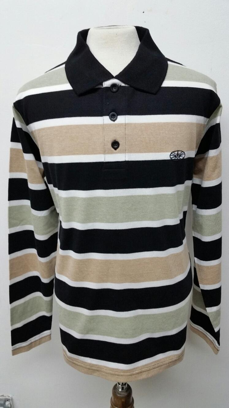 BOY'S POLO SHIRT, STYLE # 396 BLACK WITH OLIVE / TAN, LONG & SHORT SLEEVE, 60% COTTON 40% POLY, SIZE 2-7 & 8-16,