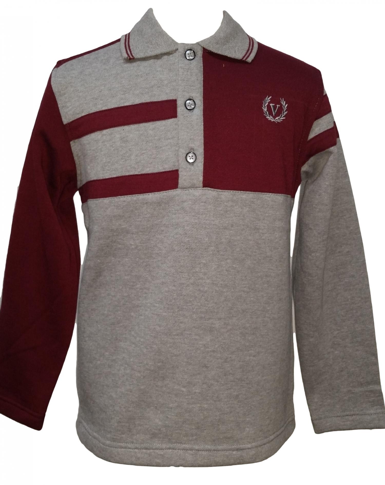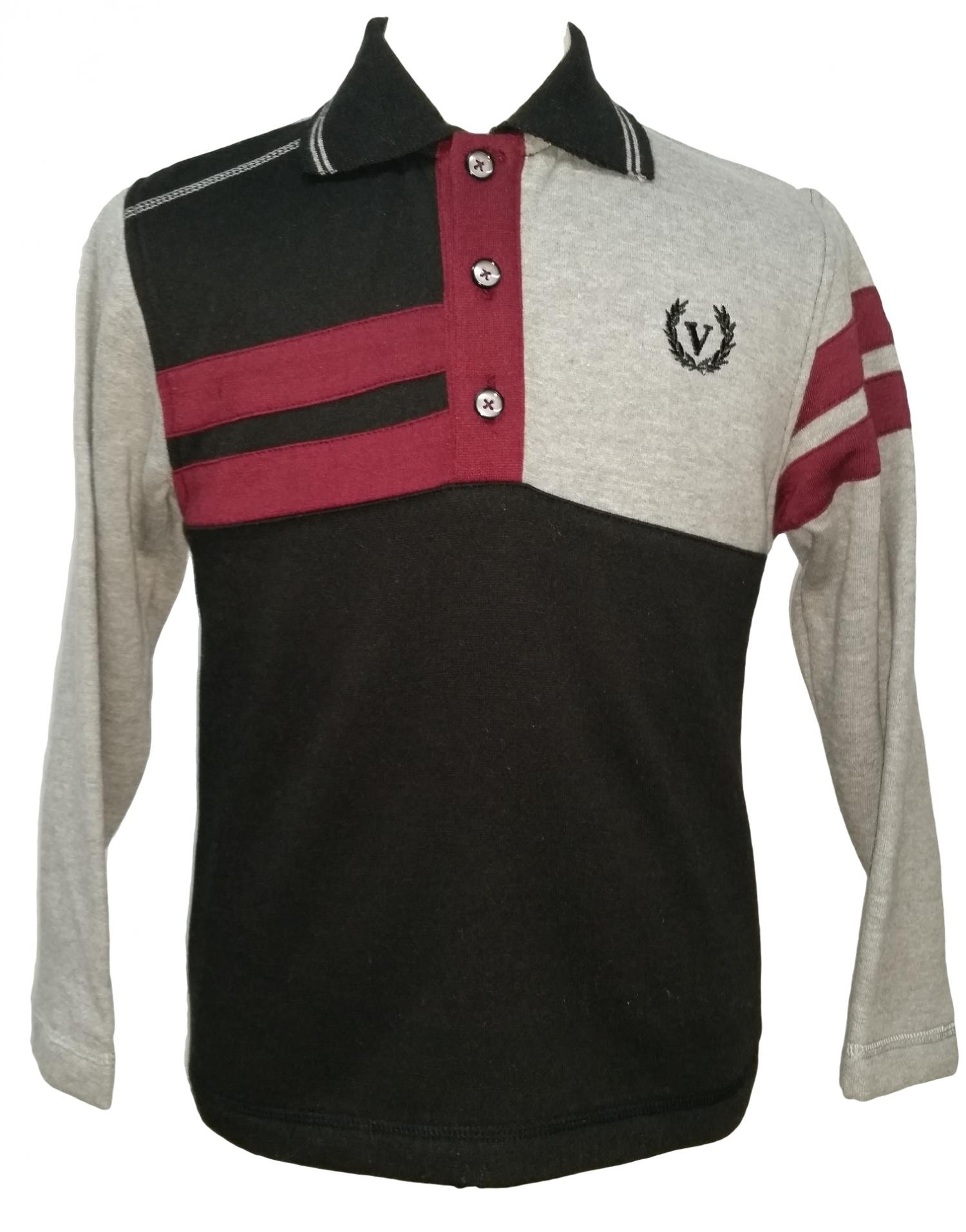 FLEECE POLO SHIRT, 60% COTTON 40% POLY, BLACK WITH MAROON, SIZE 2-17 & 8-16, STYLE # 360