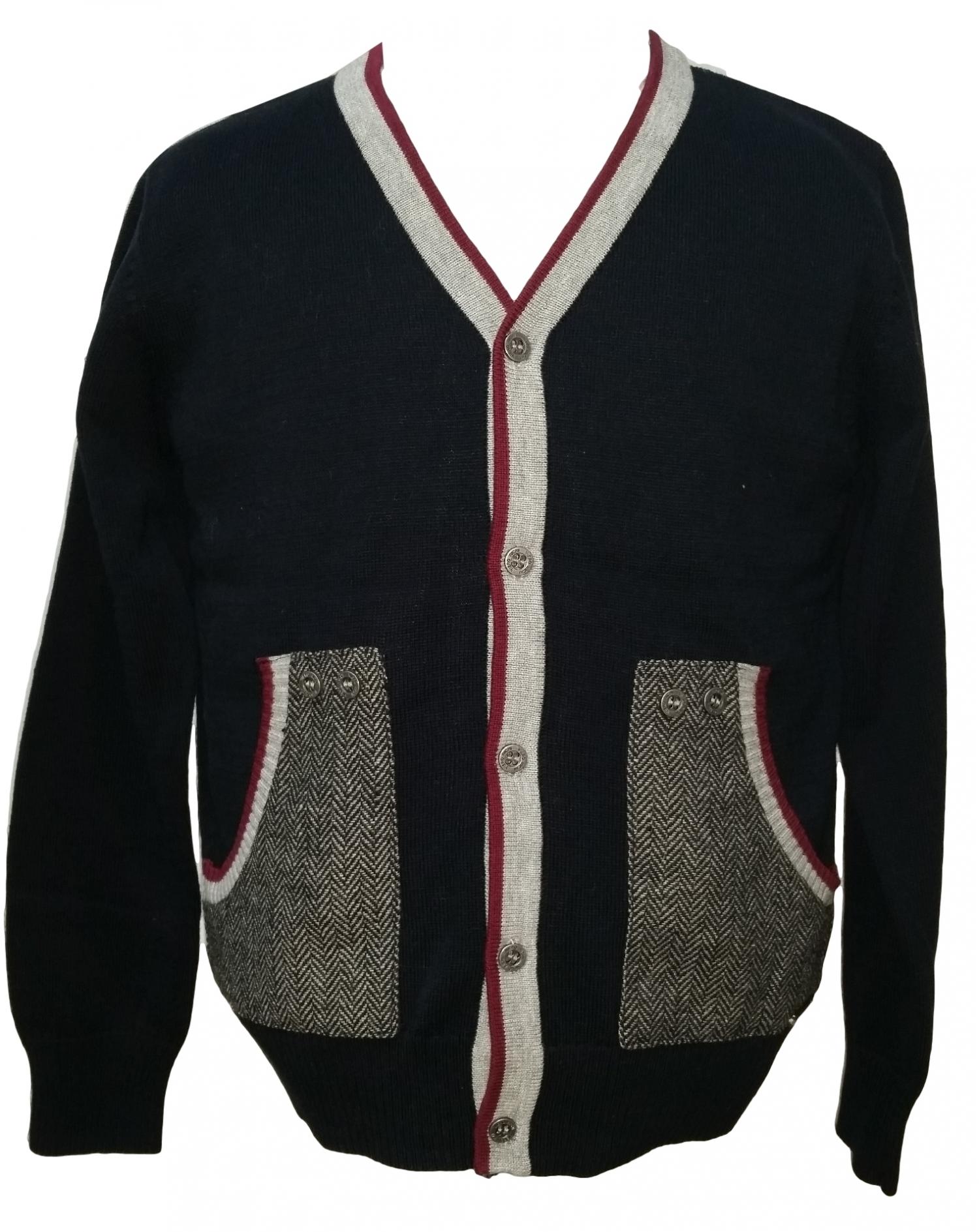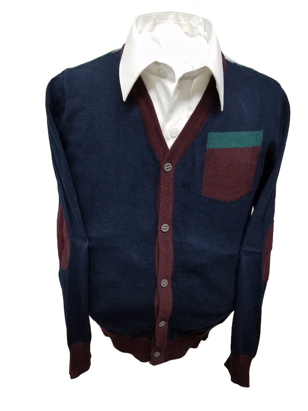 BOY'S CARDIGAN SWEATER, STYLE # 2364, 100% COTTON, NAVY, MAROON, DARK GREEN COMBINATION, SIZES 2-7 & 8-16 & 16-20,