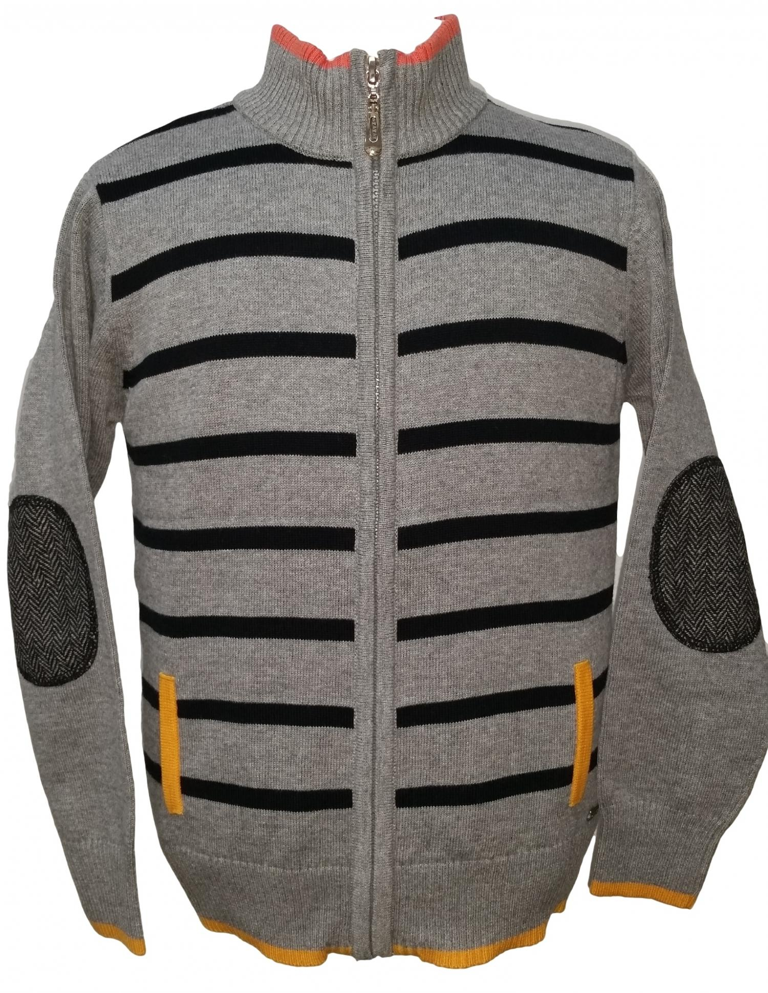 BOY'S SWEATER 100% COTTON SIZE 2-7 & 8-16 GRAY WITH RUST STYLE # 2301
