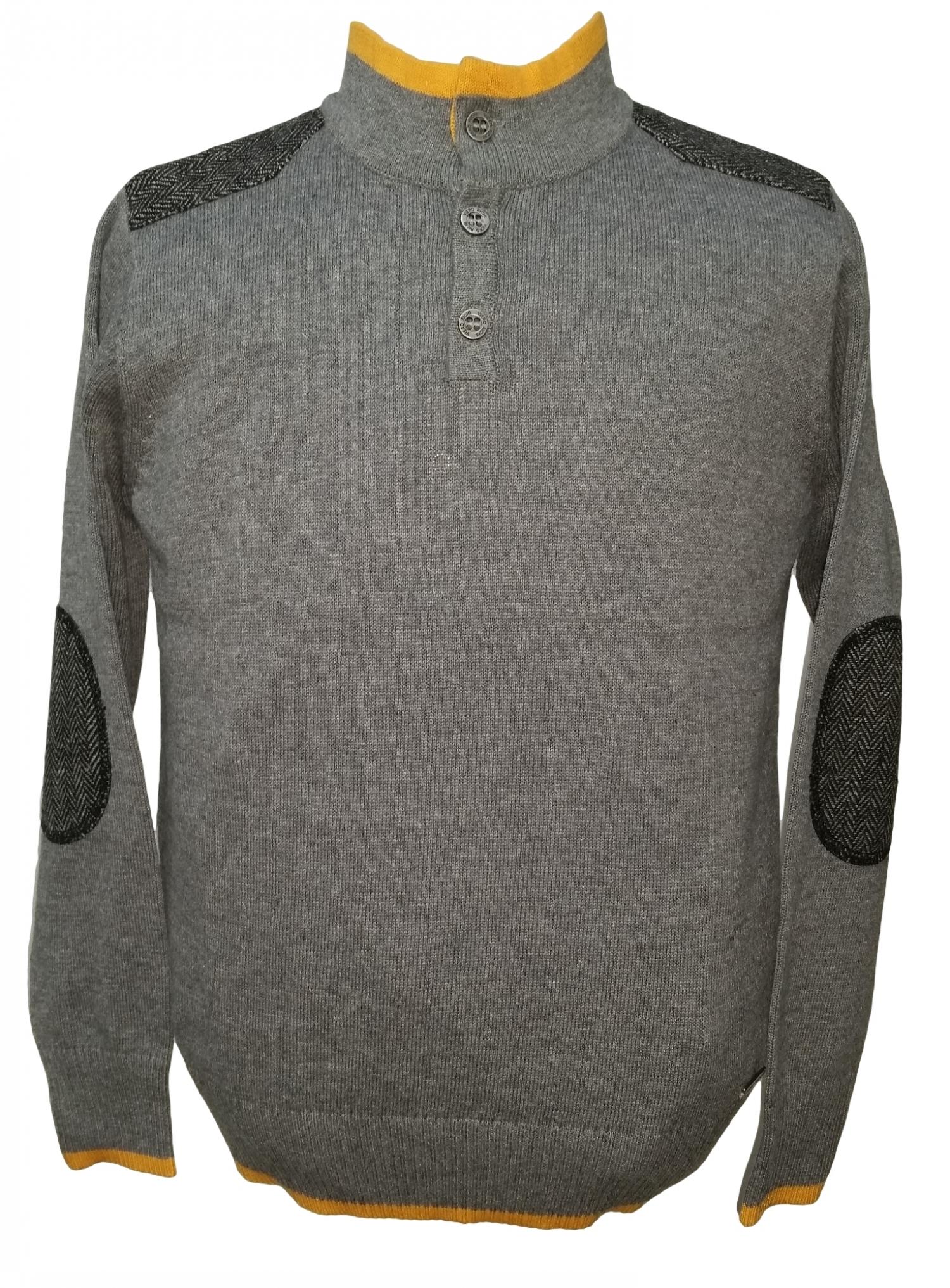 BOY'S SWEATER MOCK NECK OPEN 3 BUTTONS, STYLE # 2342 GRAY, 100% COTTON, SIZES 2-7 & 8-16,