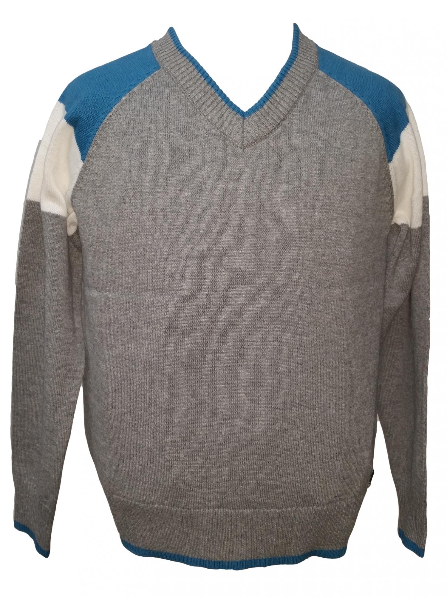 BOY'S SWEATER V NECK 100% COTTON MACHINE WASHABLE SIZE 2-7 & 8-16 GRAY WITH TEAL STYLE # 2305