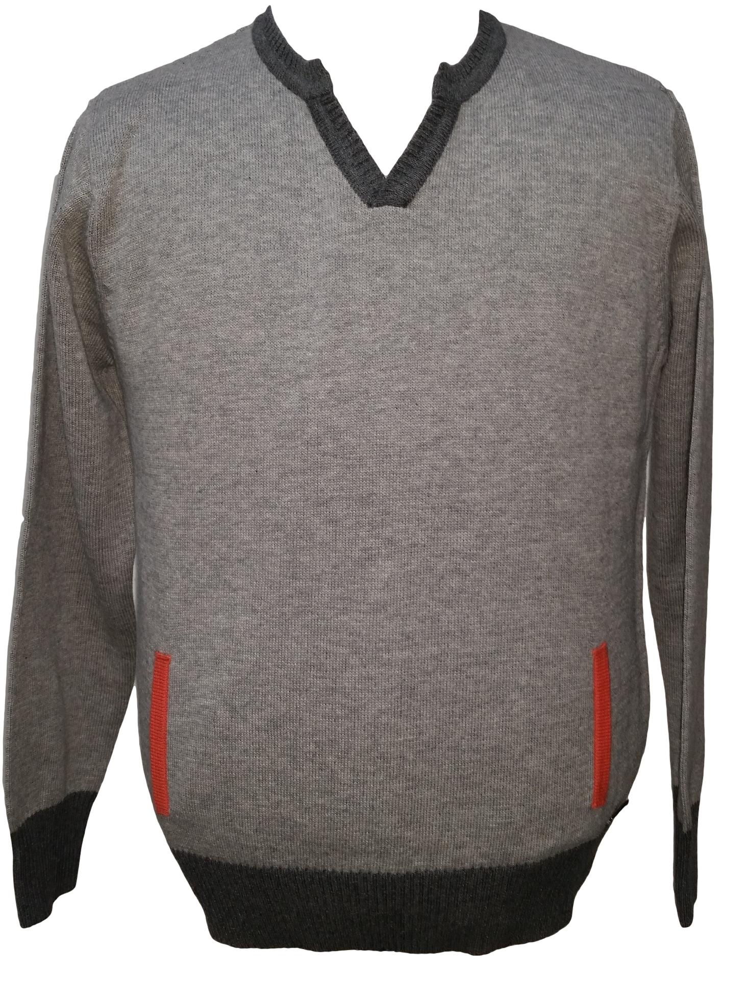 BOY'S SWEATER V NECK, STYLE # 2343 GRAY, 100% COTTON, SIZES 2-7 & 8-16