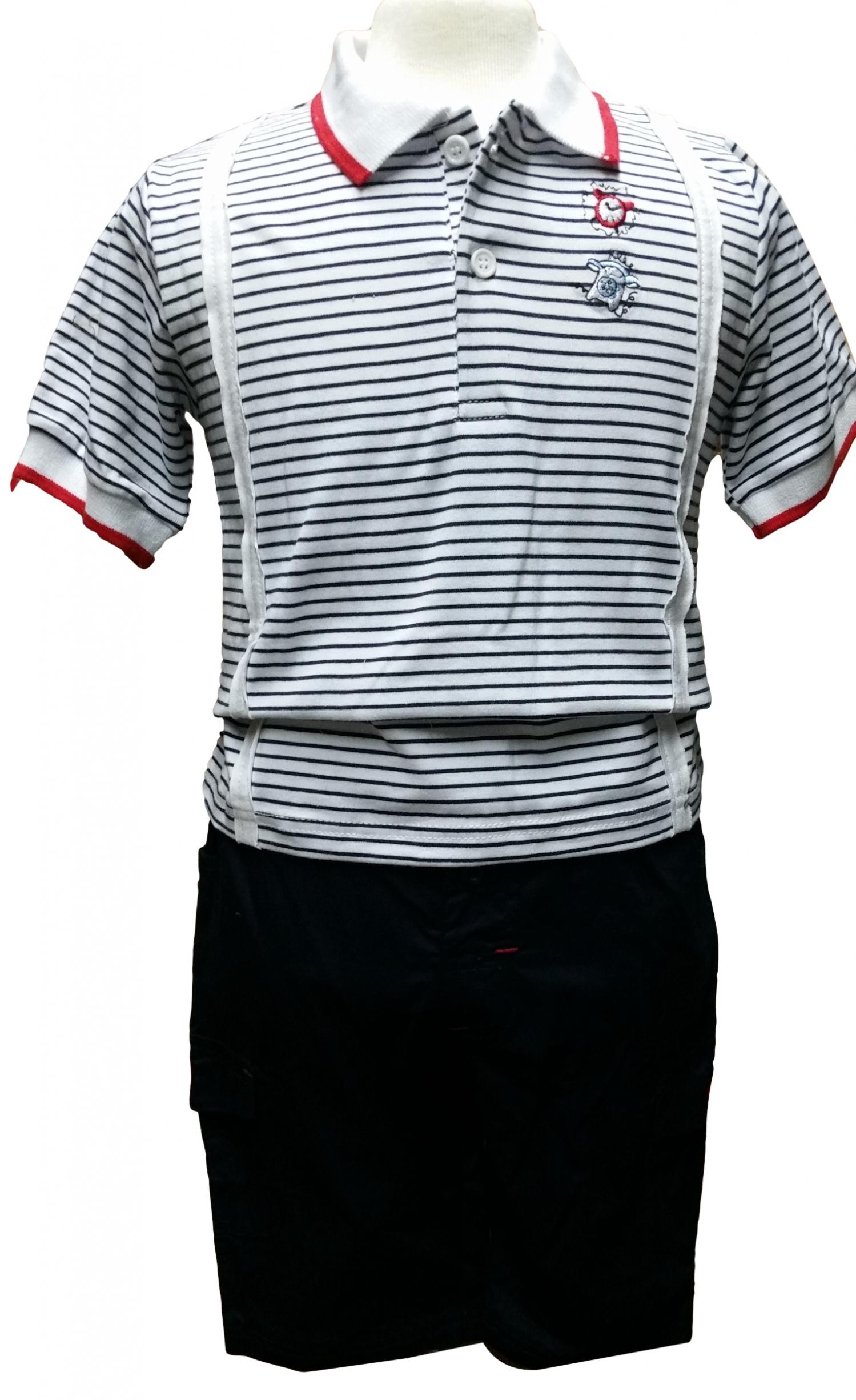 BOY'S TODDLER SHORT SET, STYLE # Y300R, NAVY BLUE SHORT AND WHITE STRIPE SHIRT, 100% COTTON, SIZES 1-5