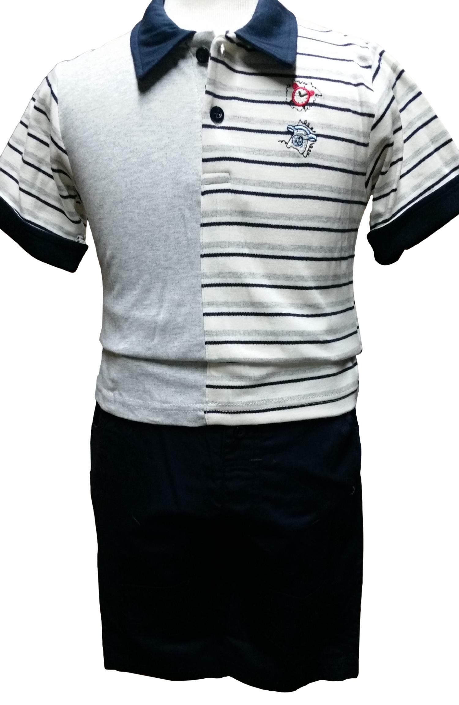 BOY'S TODDLER SHORT SET, STYLE # Y316N NAVY BLUE SHORT AND LIGHT SILVER GREY SHIRT, 100% COTTON, SIZE 1-5
