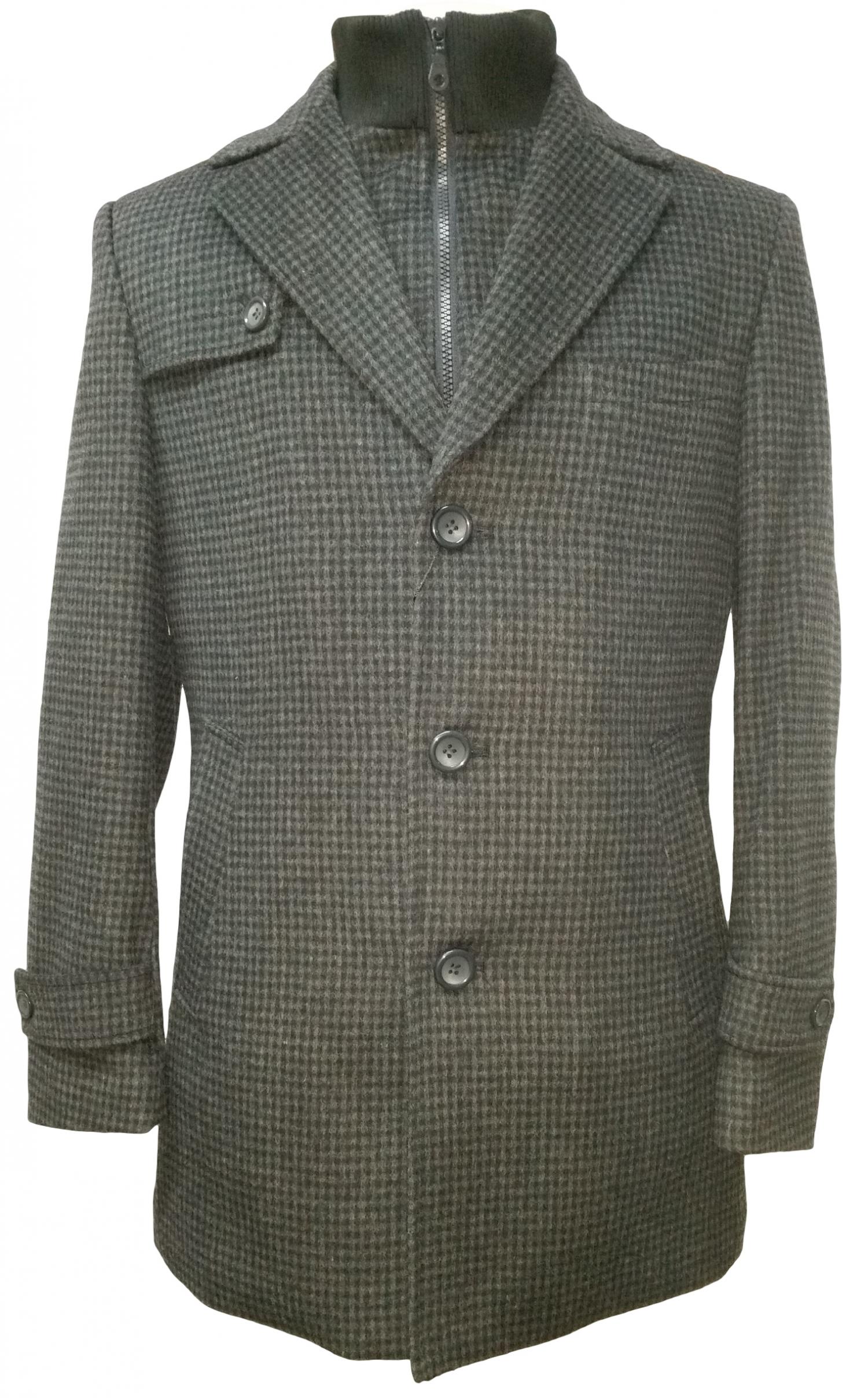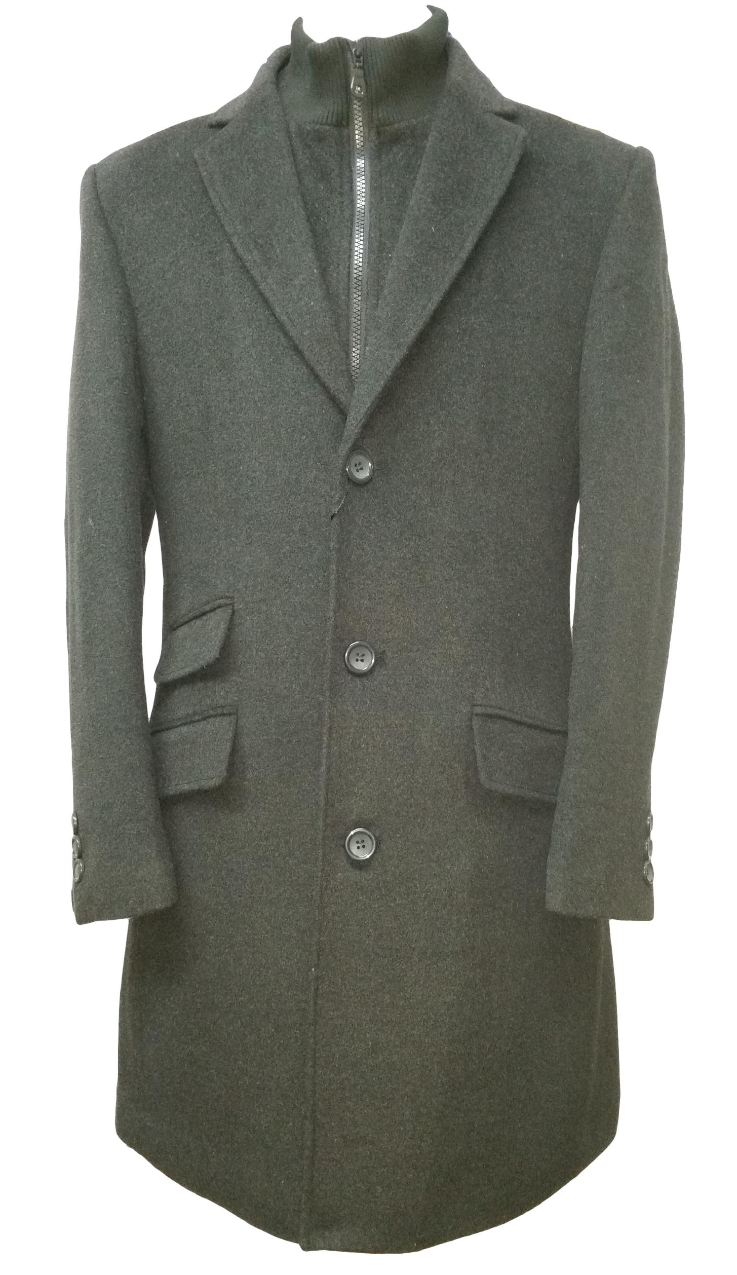 KNEE LENGTH WOOL COAT SLIM FIT, 80% WOOL 20% POLY, AVAILABLE IN 3 COLORS SOLID BLACK, SOLID CHARCOAL GREY, CHECKERS GRAY, MEN'S SIZES 36-44 & BOY'S SIZE 14-20 THE VEST IS REMOVABLE, HAS EXTRA PADDED LINING FOR WARM, STYLE # 151