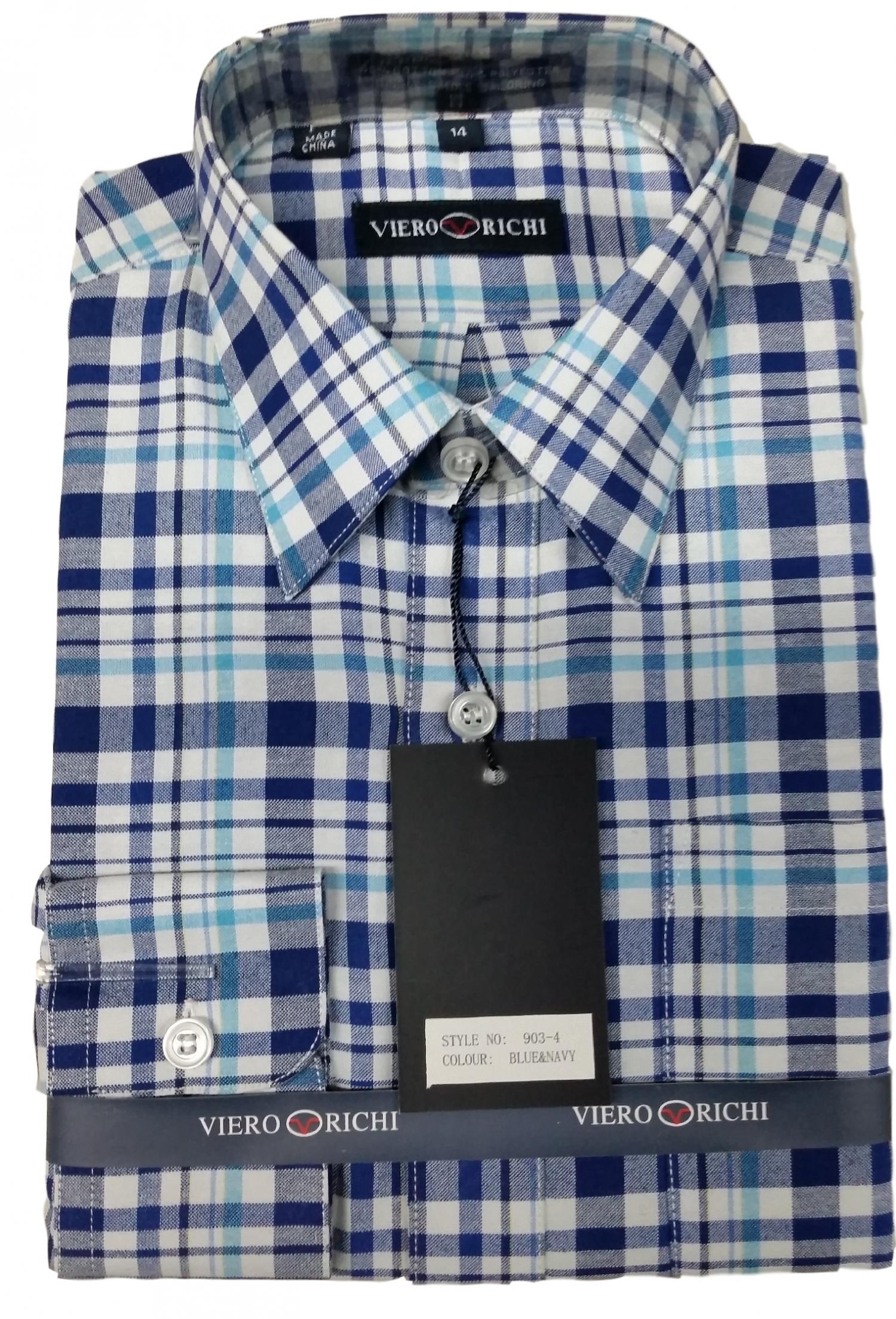 BOY'S SHIRT 60% COTTON 40% POLY, BLUE CHECKERS, SIZES 8-14 & 16-20 STYLE # 903-4