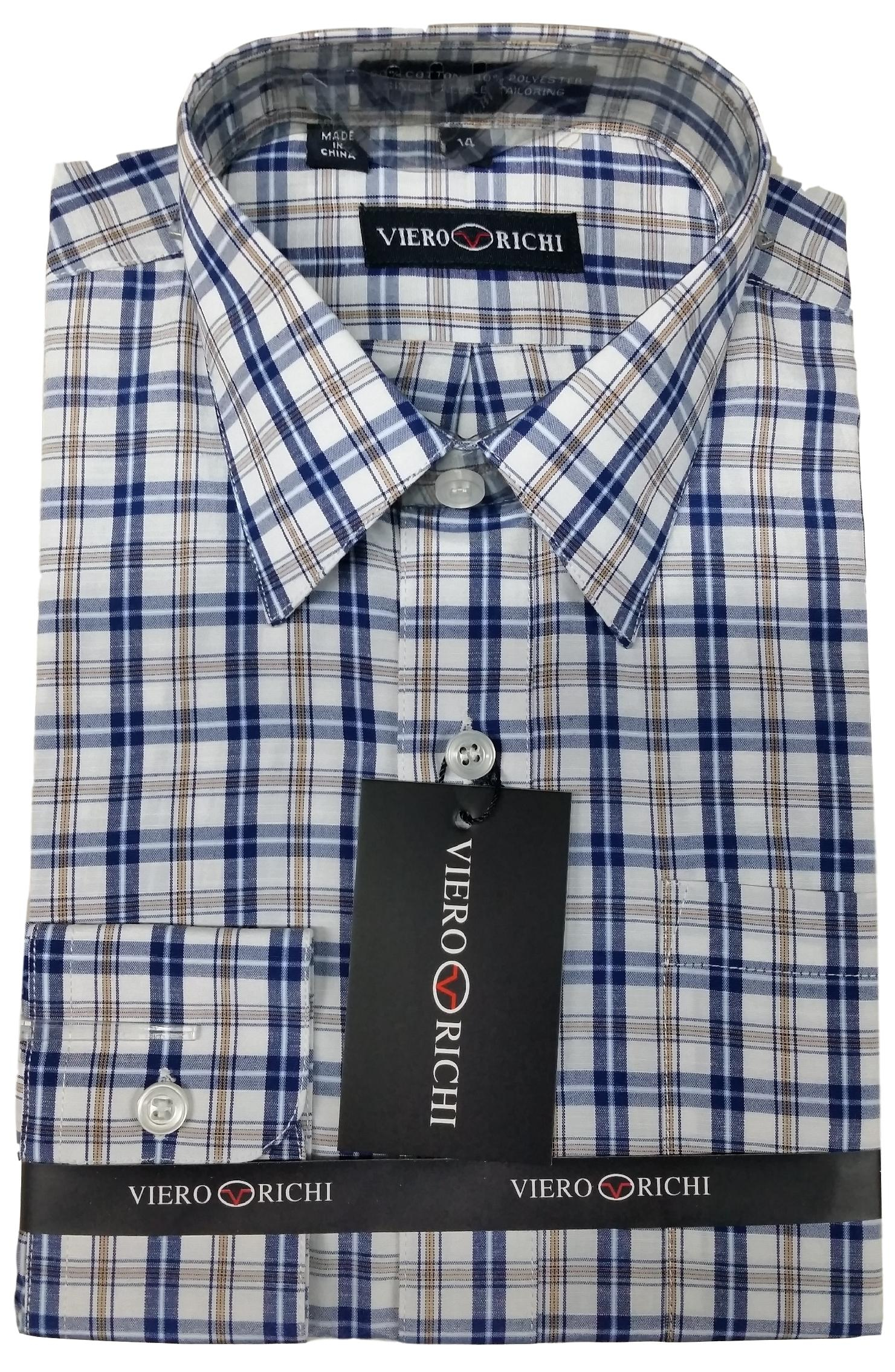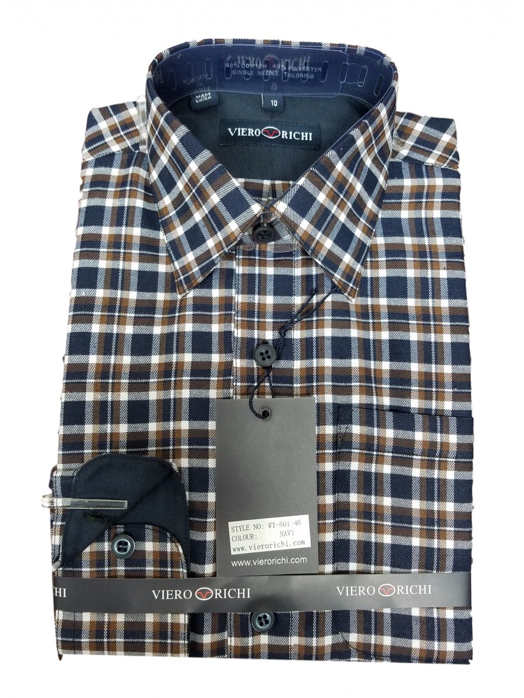 BOY'S SHIRT 60% COTTON 40% POLY, BLUE/BROWN CHECKERS, SIZES 8-14 & 16-20 STYLE # G226-3