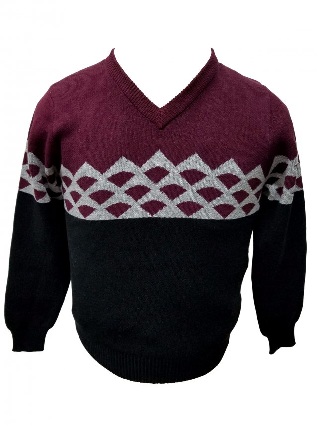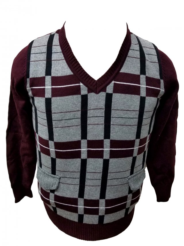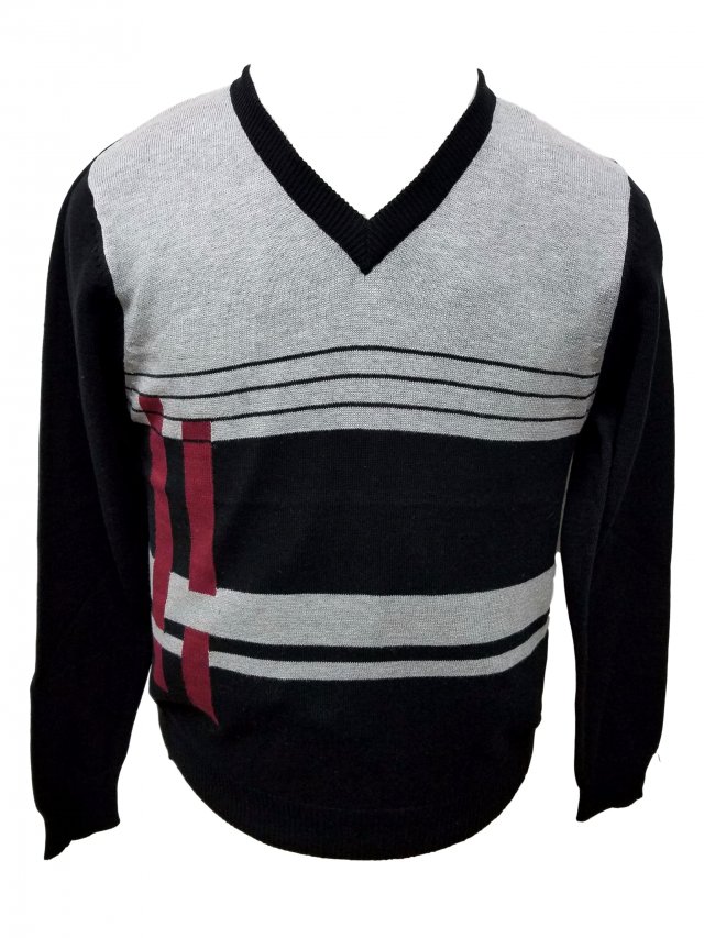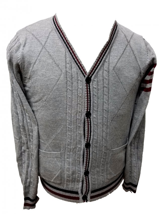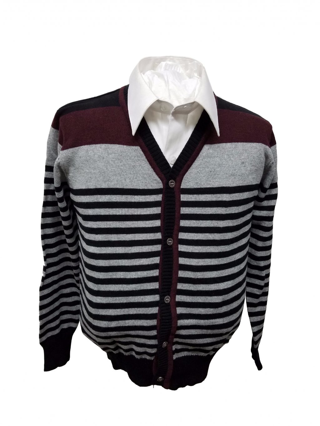 BOY'S CARDIGAN SWEATER, STYLE # 2360, 100% COTTON, BLACK, GREY, MAROON COMBINATION, SIZES 2-7 & 8-16 & 16-20,