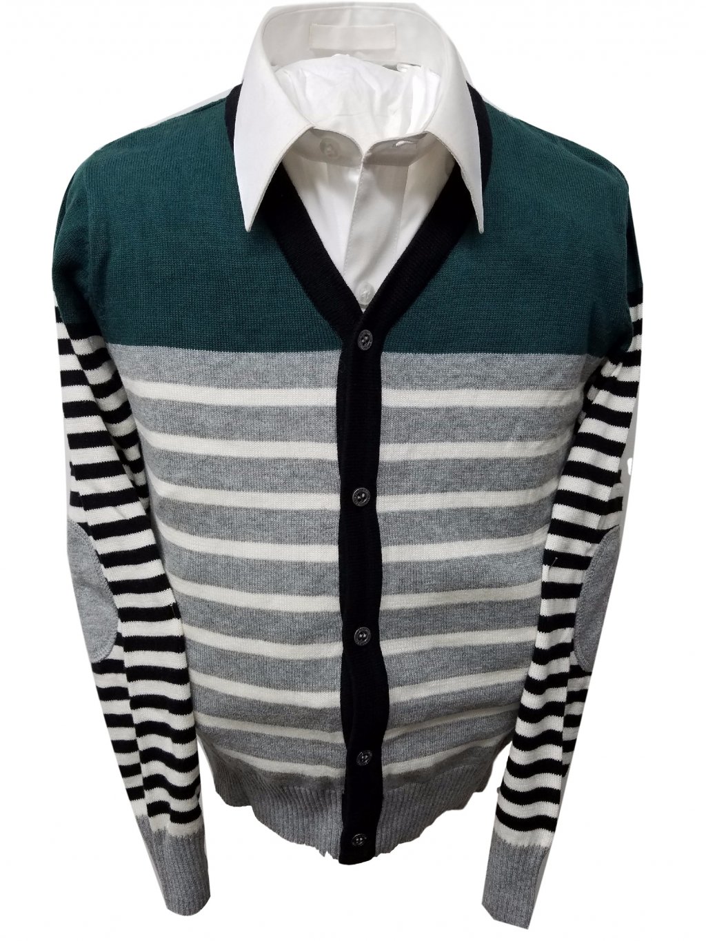 BOY'S CARDIGAN SWEATER, STYLE # 2363, 100% COTTON, BLACK, GREY, DARK GREEN COMBINATION, SIZE 2-7 & 8-16 & 16-20