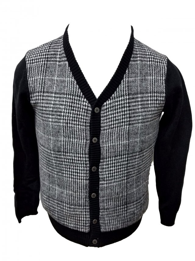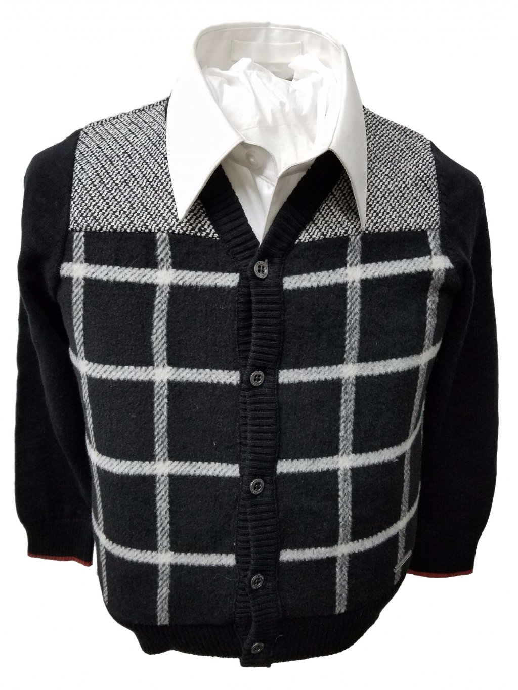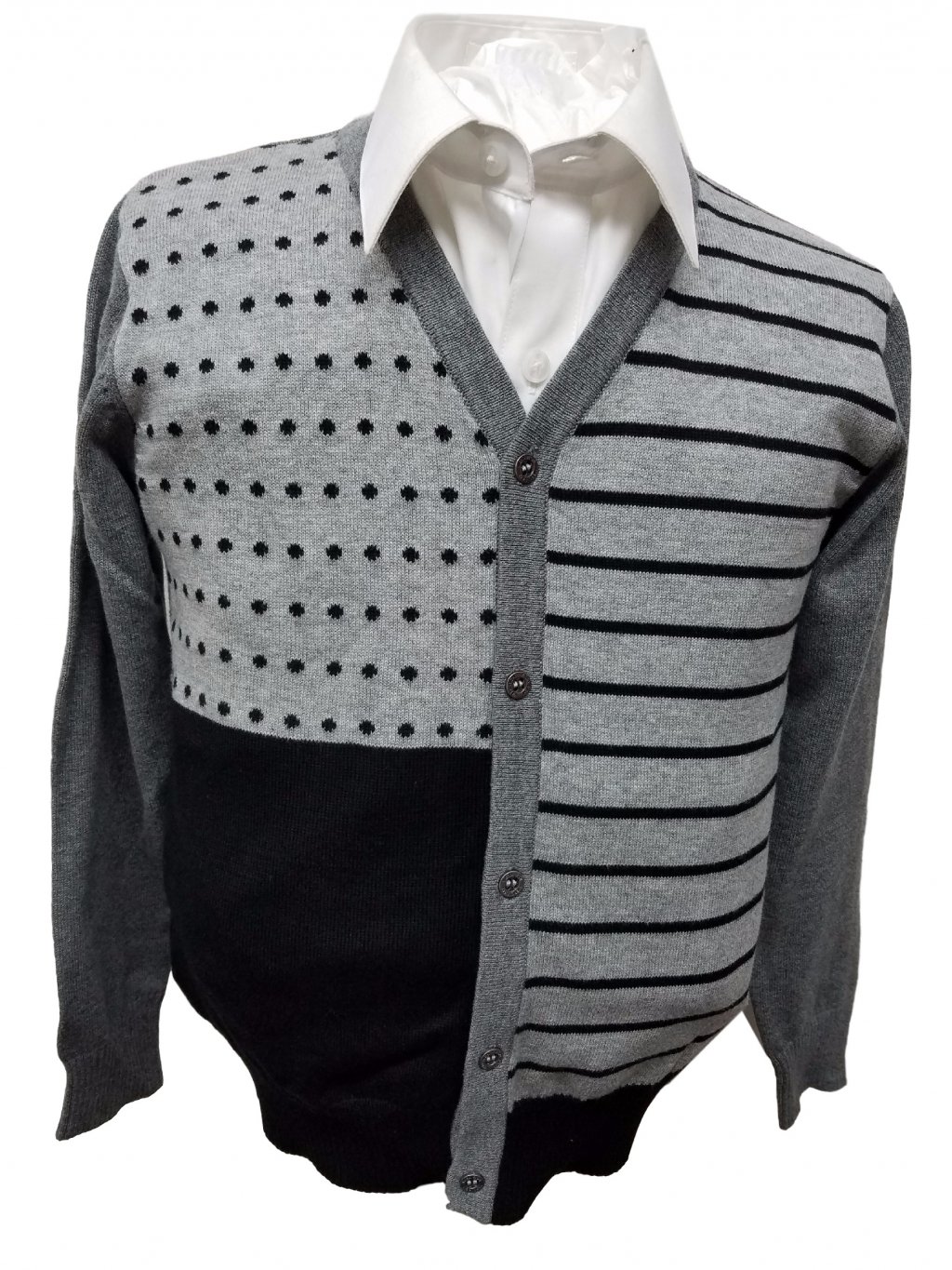 BOY'S CARDIGAN SWEATER, STYLE # 2367, 100% COTTON, BLACK, GREY COMBINATION SIZES 2-7 & 8-16 & 16-20