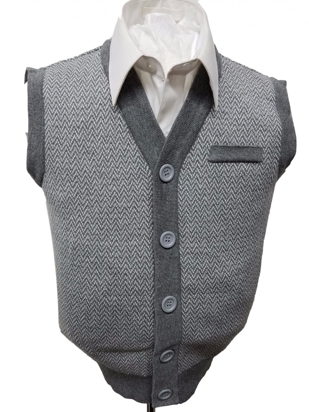 BOY'S VEST, STYLE # 2369, 100% COTTON, GREY JAQUARD, SIZES 2-7 & 8-16