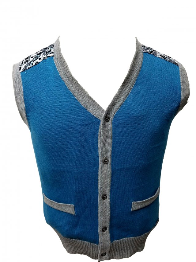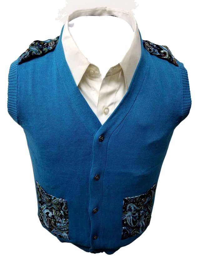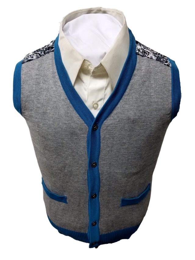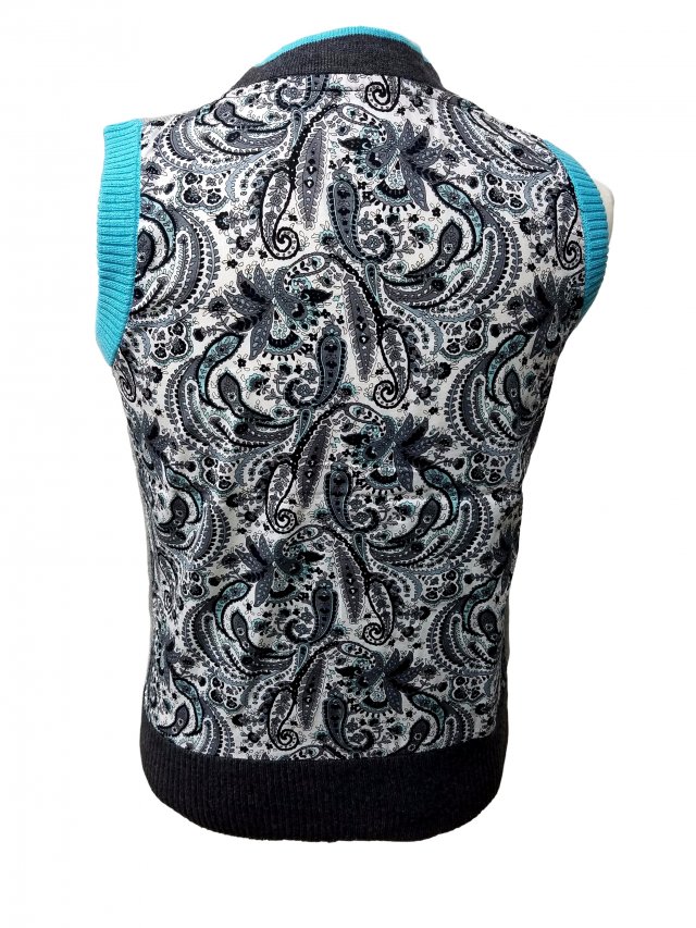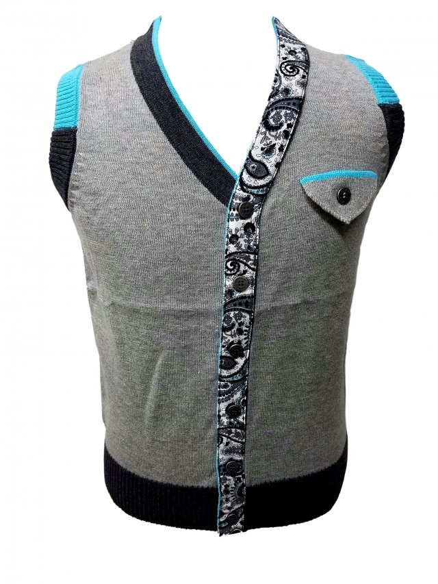 BOY'S SWEATER VEST 100% COTTON SIZES 2-7 & 8-16 STYLE # 2388 THE BACK OF THIS VEST IS WOVEN FABRIC PAISLEY DESIGN