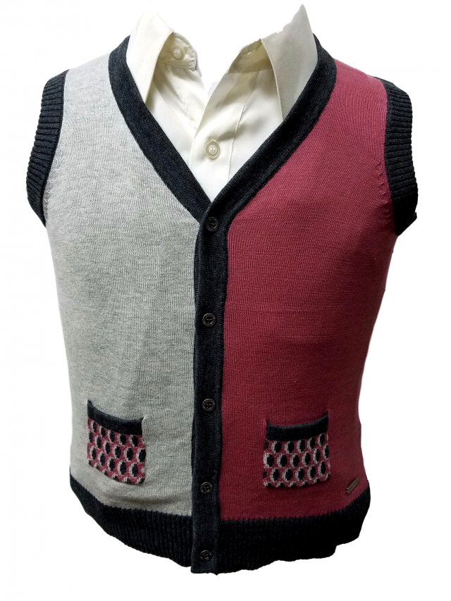 BOY'S SWEATER VEST 100% COTTON SIZES 2-7 & 8-16 STYLE # 2389 THE BACK HAVE DESIGN SAME AS ON THE POCKETS, NOT SOLID COLOR