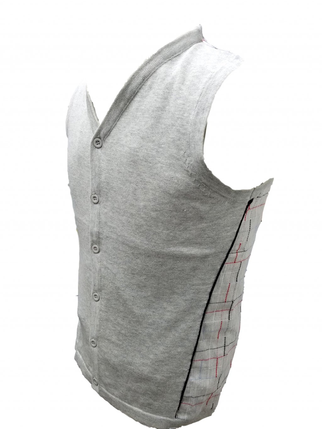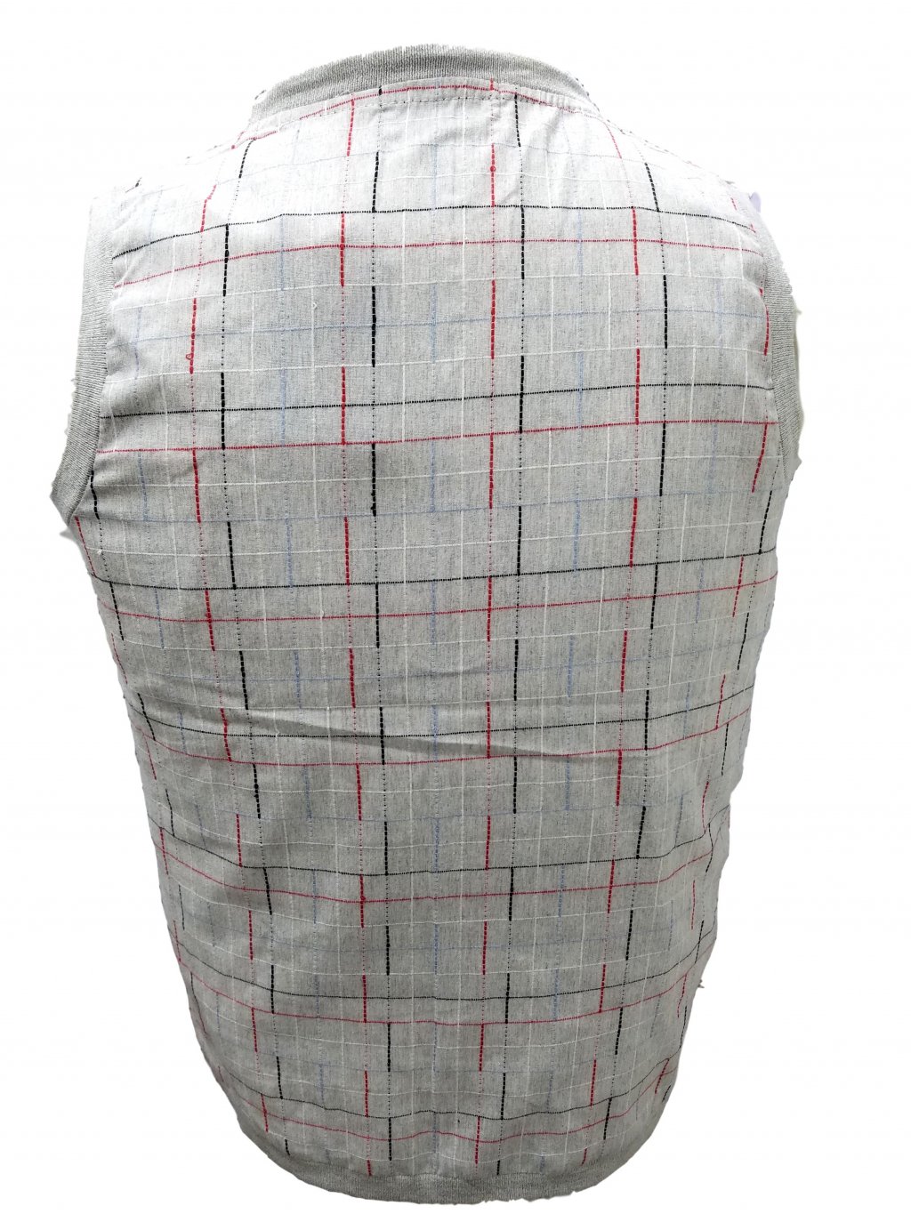 BOY'S VEST STYLE # 2422 100% COTTON, GREY, THE BACK IS PLAID WOVEN FABRIC, SIZES 2-7 & 8-16
